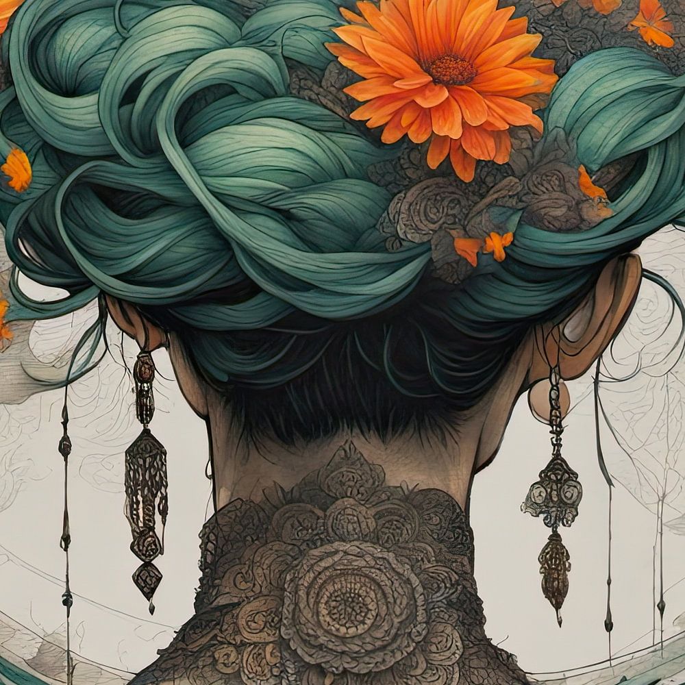 Painting Flower Portrait 6.42 - a painting from a series of paintings about dreams, colours, butterflies and flowers.