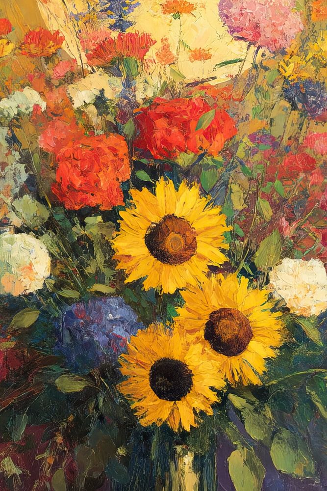 Details: flower painting, painting flowers, sunflowers, colourful, bouquet, art, abstract, style, nature, background