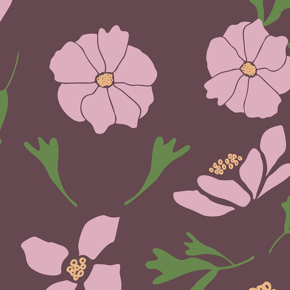 Simple semi abstract floral motifs in retro inspired color palette. Graphic collage of flower shapes. Romantic, Bohemian, Retro, Eclectic, New Rural, Scandinavian living style.
