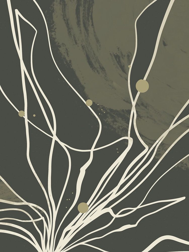 The flower is set down in one flowing line and accentuated with circles and dots. As if it were a flower spreading its seeds in the air.