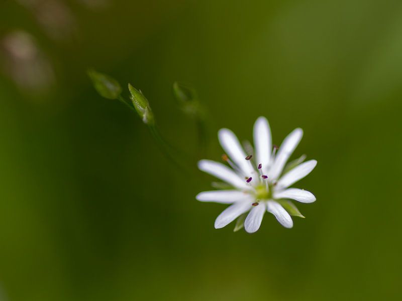 A small sparkling white flower seems to float above a green sea. All alone, rising from the shadows. Just to do what it is meant to do. Shine. As brightly as it can.