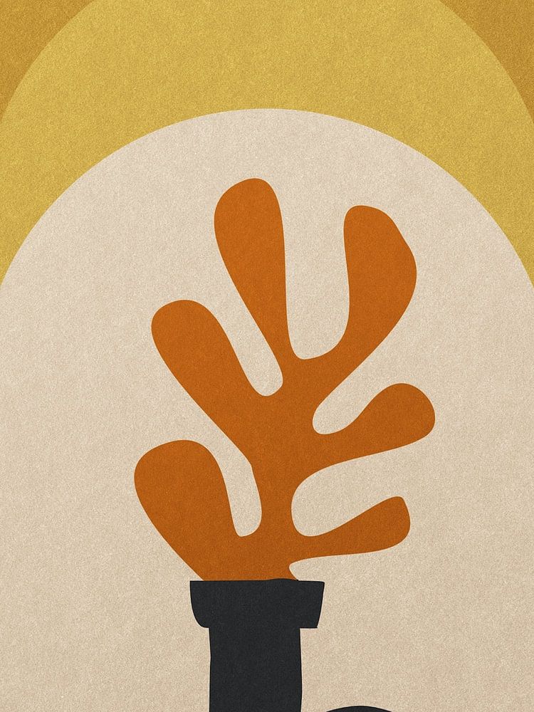 Inspired by Henri Matisse I may present you here a wonderful nature leaf painting in vase as a still life in ocher yellow golden colors.