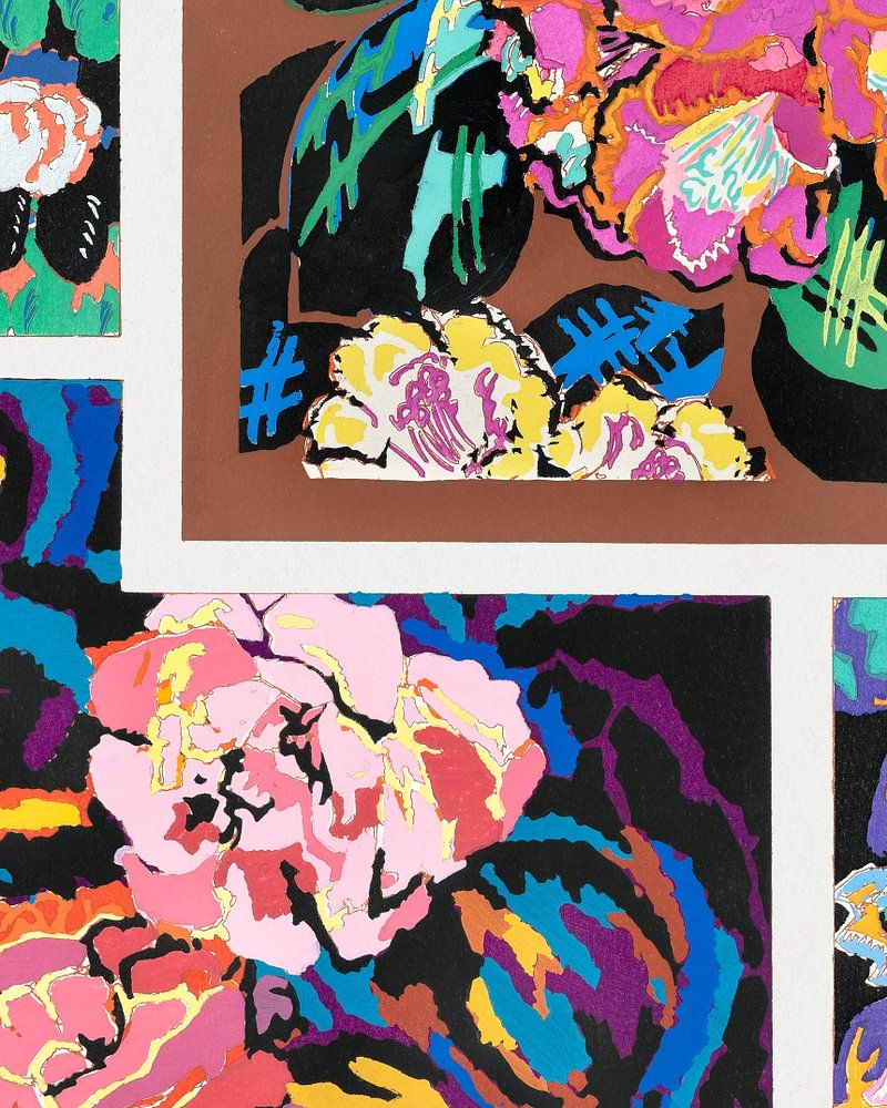 Flower vintage art deco pattern, variations 3 from our own Variations Quatre-Vingt-Six Motifs Décoratifs En Vingt Planches (1928) by Édouard Bénédictus