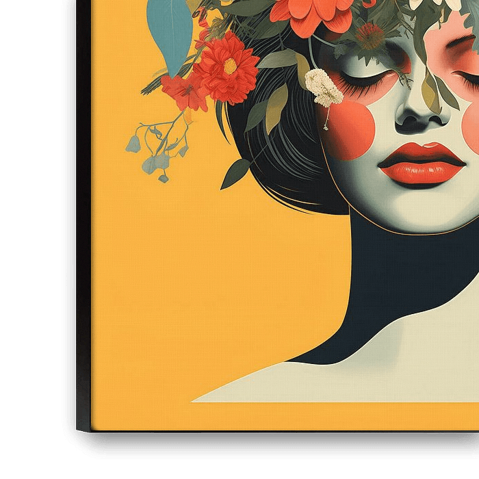 Enter a world of lush emotions and timeless beauty with this digital artwork. Here, feminine power is masterfully depicted amid an explosion of flowers, where each blossom seems to tell its own story. This breathtaking image reflects the splendour of natural grace and refinement, taking every viewer on a journey of wonder and enchantment. A fusion of colours and shapes that transforms any space into a serene oasis of inspiration and elegance.