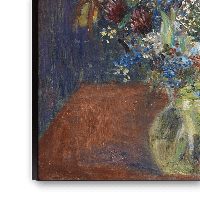 Buy Flowers against blue background, Otto Modersohn as a reproduction on canvas, ArtFrame, poster and wallpaper, printed on demand in high quality.