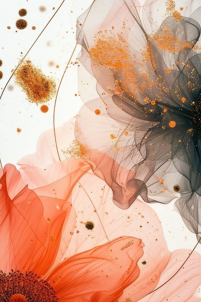 On a serene white background, the vibrant colours of a red and black floral duet danced in perfect harmony. Their elegant shapes stretched like poetic brushstrokes, an abstraction of beauty and contrast. The red flower, a vivid reminder of passion and love, embraced the darkness of the black petal. Together they formed a symbiosis of emotions, a tango of colours in search of balance. The white background served as the pure canvas of life, on which this intriguing tableau unfolded. A work of art that invited the viewer to explore the depth of emotions hidden in the simplicity of colours and shapes.