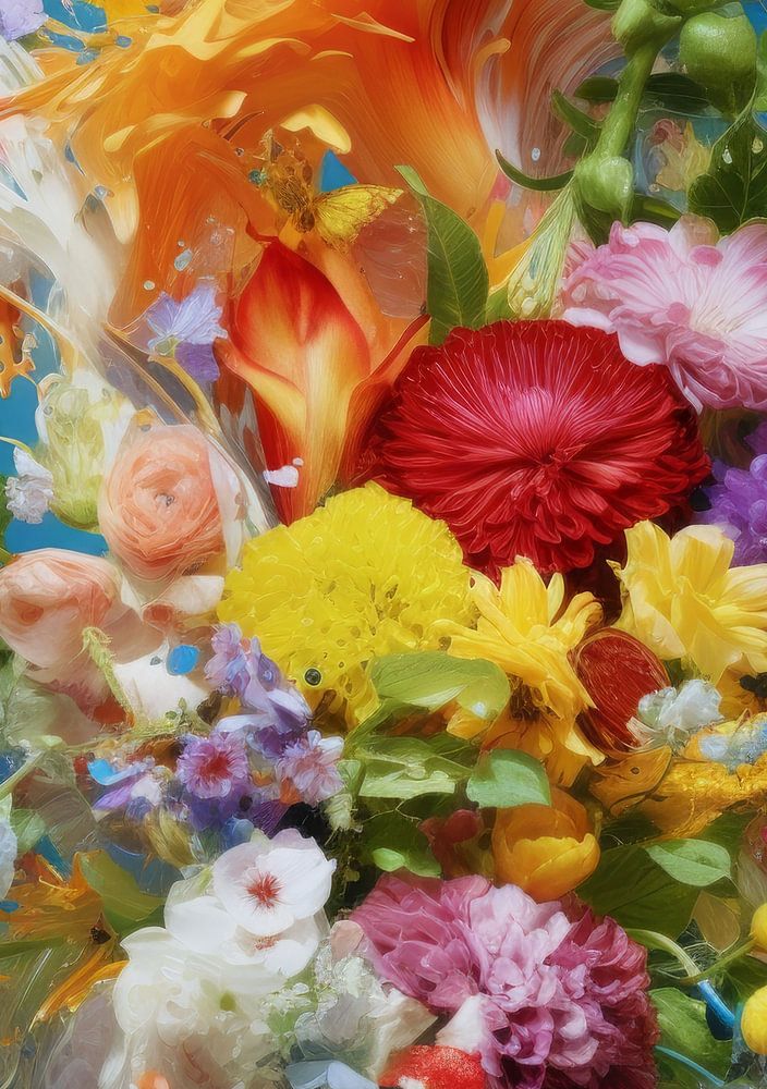 Buy this painting Flowers and butterflies by DNH Expressions as a reproduction on canvas, ArtFrame, poster and wallpaper, printed on demand in high quality.