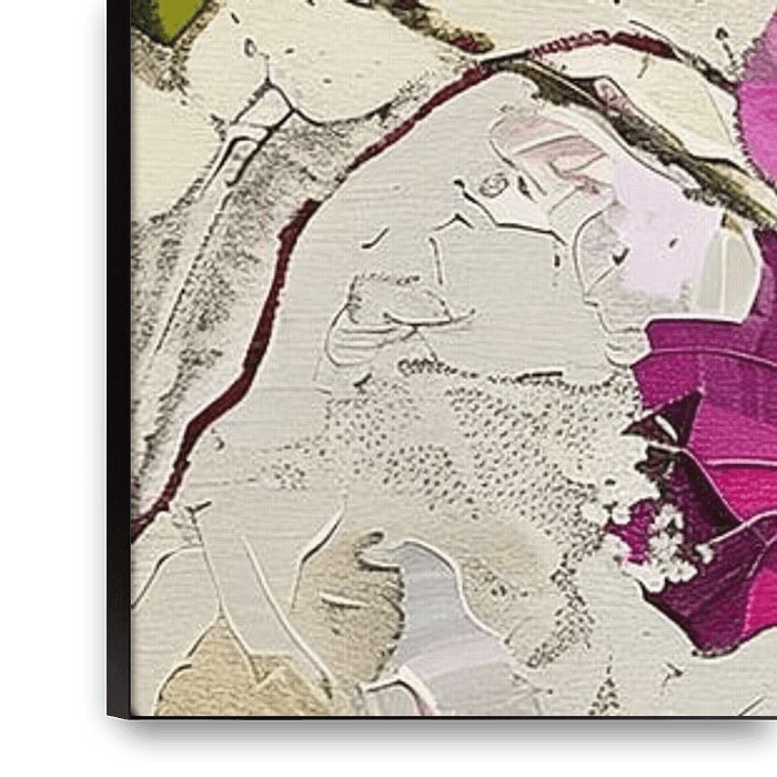 Flowers for Garden - This floral painting depicts a beautiful branch with vibrant purple and pink flowers, which create a cheerful atmosphere against a light, neutral background.