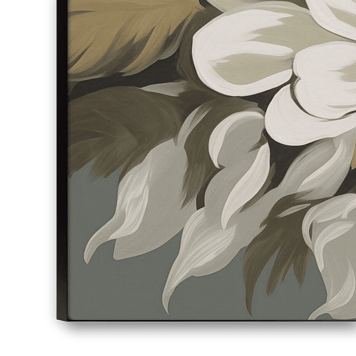 Buy this digital art artwork Flowers in olive green and taupe by Bert Nijholt as a reproduction on canvas, ArtFrame, poster and wallpaper, printed on demand in high quality.