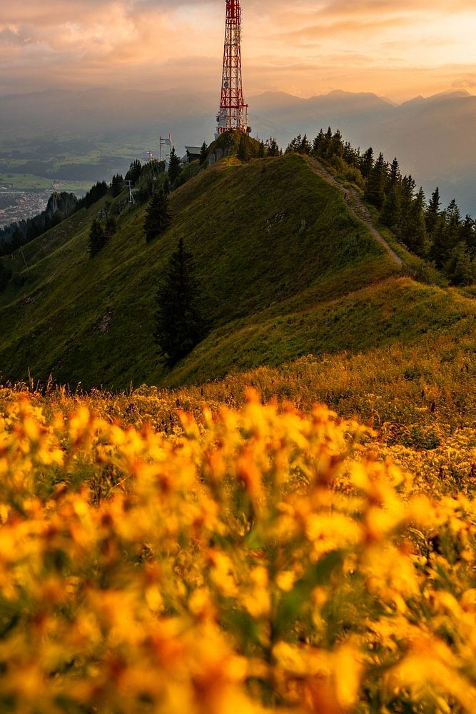 Buy the photo Flowery sunset at Grünten by Leo Schindzielorz on canvas, ArtFrame, poster and wallpaper, printed on demand in high quality.