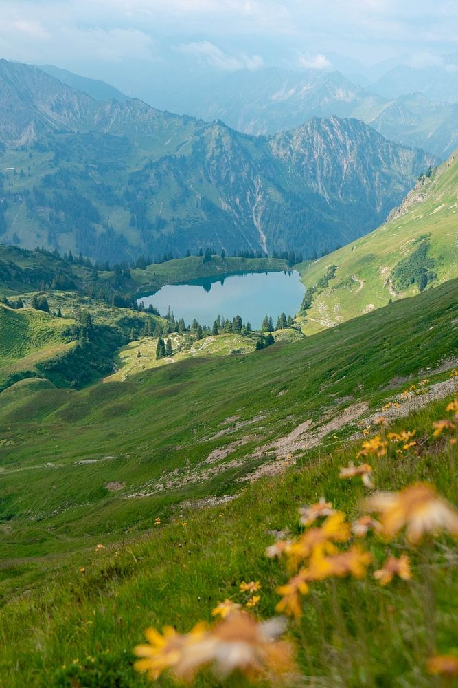 About "Flowery view of the Seealpsee in the Allgäu Alps"