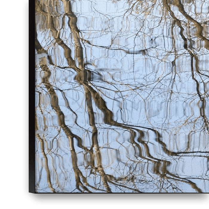 Abstract water landscape with reflections of trees in flowing water with ZEN feeling.