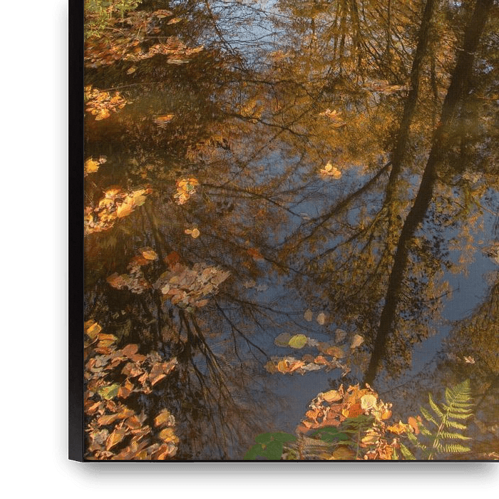 Een prachtig herfstlandschap met reflecties van de bomen in het water en het kleurrijke herfstbos