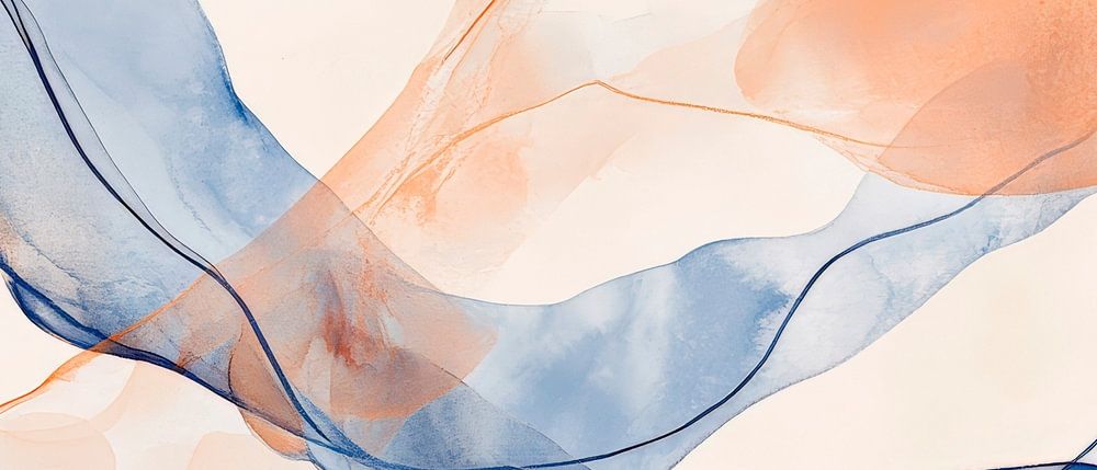 Gentle waves of warm orange and calming blue tones dance harmoniously over a soft background. These flowing shapes convey a sense of calm and lightness, ideal for a bedroom or a modern living room. The timeless colours create an inviting atmosphere that encourages relaxation and dreaming.