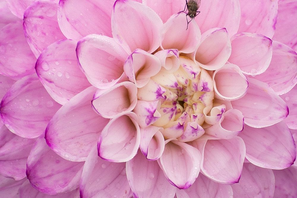 I wasn't the only one who enjoyed this dahlia. On this picture you see a fly with its legs against each other. The pink color makes it a warm photo. The fly provides an extra addition
