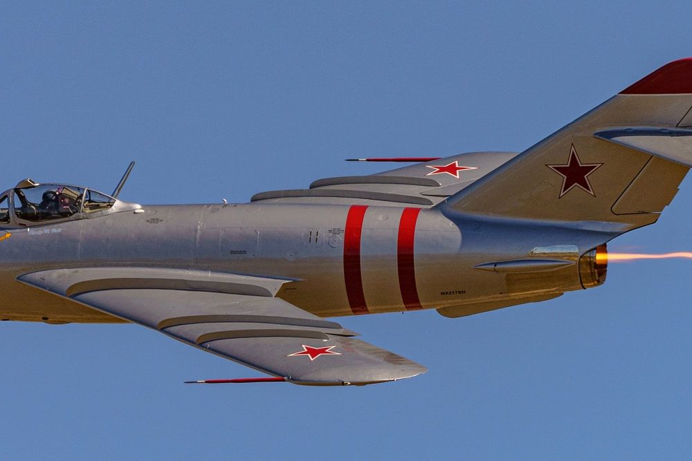 Flyby Mikoyan-Gurevich Mig-17F Fresco with afterburner Registration: NX217SH.Flyby of Randy W. Ball in his own Mikoyan-Gurevich Mig-17F Fresco during the airshow at Sheppard Air Force Base on 26 October 2019.The MiG-17 is the successor to the successful MiG-15. Its development began in 1949. The aircraft was designed to overcome the 15's shortcomings at high speeds. The main innovation was the use of corner wings. Together with the redesigned tail, these provided more stability at speeds above Mach 1. The MiG-17 also received a new turbojet with afterburner copied from Rolls-Royce.