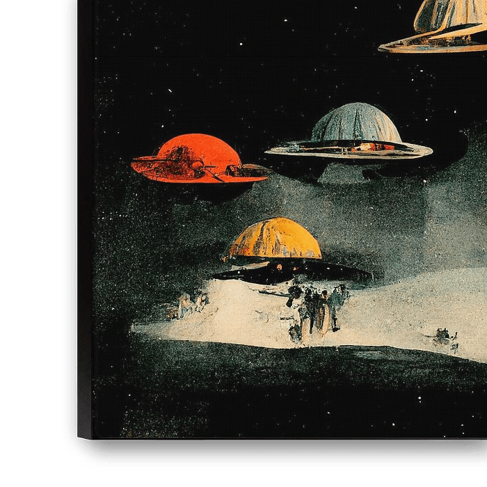 Buy this digital art artwork Flying Saucers by Treechild as a reproduction on canvas, ArtFrame, poster and wallpaper, printed on demand in high quality.
