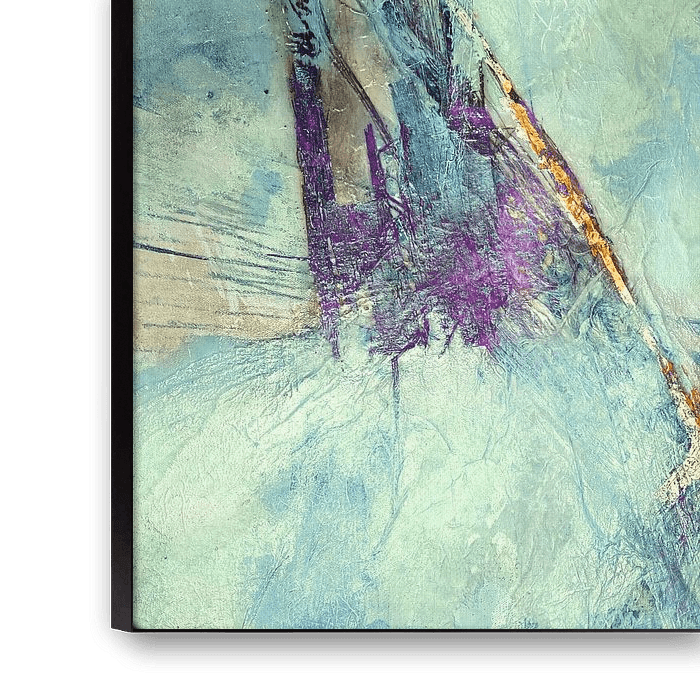 An abstract painting with lively structures in delicate pastel colors. The intense lines make you think of a large bird in flight. There is much room for your own imagination.