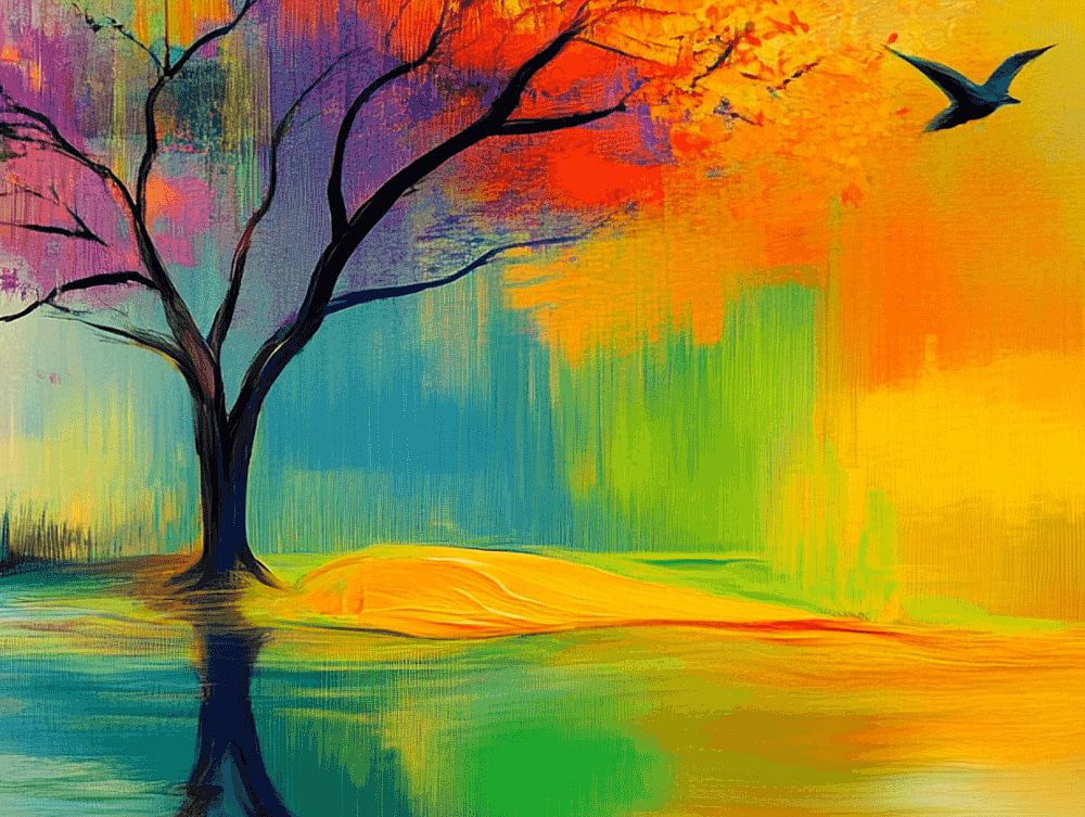 "Flying to Colour" is more than just a visual delight; it is an invitation to dream and long for summer. The work evokes memories of warm days, adventures in nature and moments of pure freedom. It is an ode to the beauty of summer and the power of colour to evoke emotions.