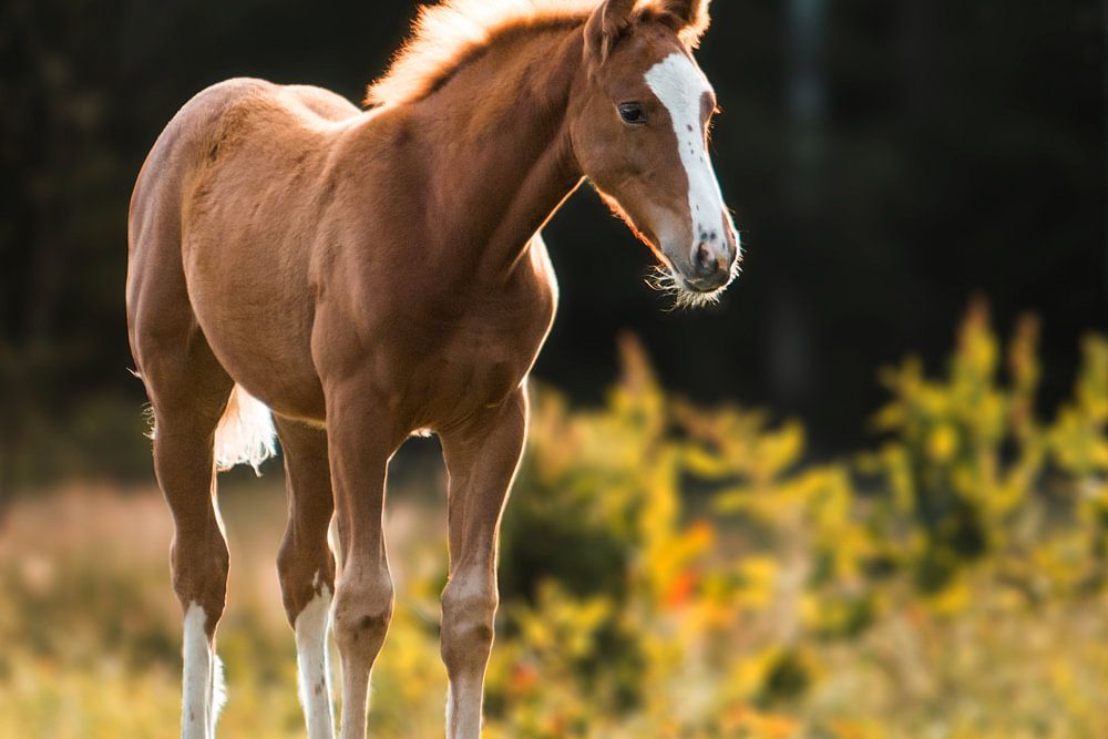 Buy this portrait Foal in the summer sun by Lotte van Alderen on canvas, ArtFrame, poster and wallpaper, printed on demand in high quality.