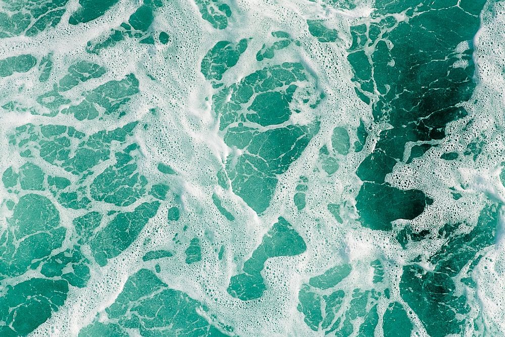 Details of Foaming waves with whitecaps in turquoise abstraction