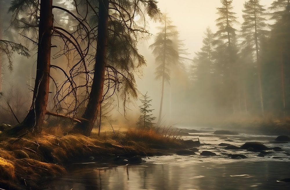 Buy this landscape artwork Fog at the mountain lake by fernlichtsicht on canvas, ArtFrame, poster and wallpaper, printed on demand in high quality.