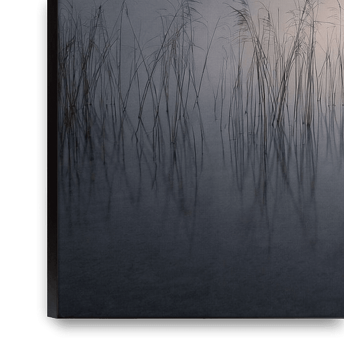 The world seems shrouded in mist this morning by the lake. The light shines softly and diffused through the thick veils of mist, the landscape almost vanishing in this mystical atmosphere. In the foreground, delicate reeds; on the horizon, one can make out trees on the opposite bank. An image full of tranquillity in soft hues,…