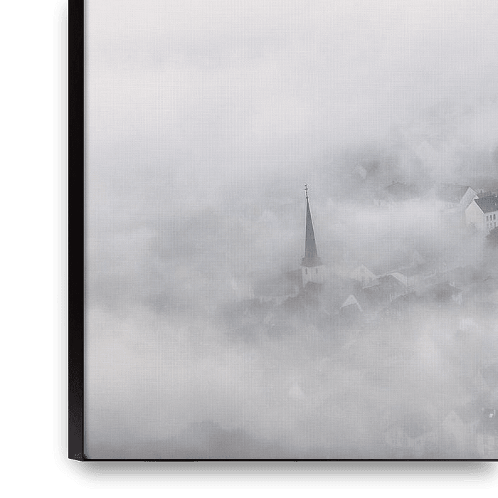 Buy this landscape artwork Fog over the valley in the village of Wolf an der Mosel on the Moselle in Germany by Bas Meelker on canvas, ArtFrame, poster and wallpaper, printed on demand in high quality.