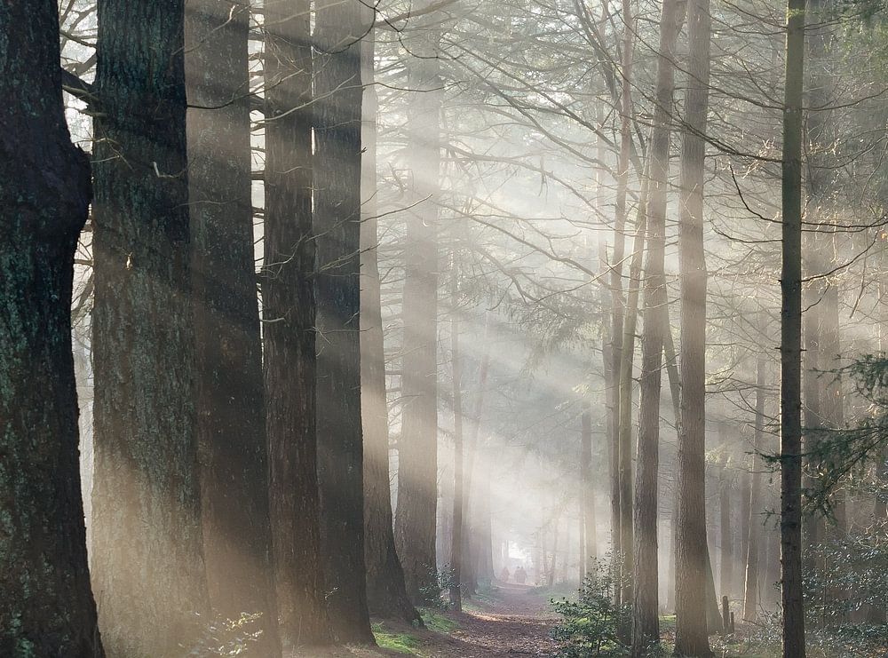 Sunbeams coming through the trees during the golden hour in the morning on the Utrechtse heuvelrug in the Zeisterbos!