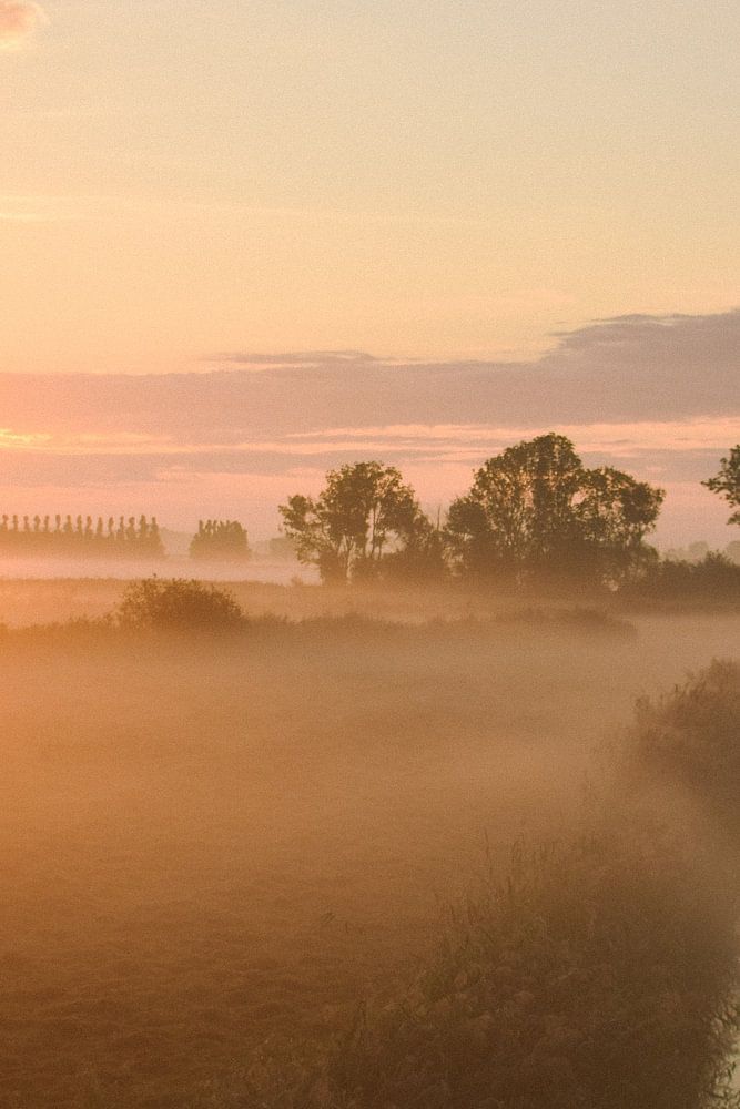 A summer sunrise in August. As the mist slowly moves itself like a blanket over the meadows of Kampen, Overijssel