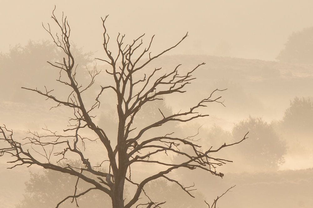 Buy this landscape artwork Foggy sunrise Posbank by Nancy van Verseveld on canvas, ArtFrame, poster and wallpaper, printed on demand in high quality.