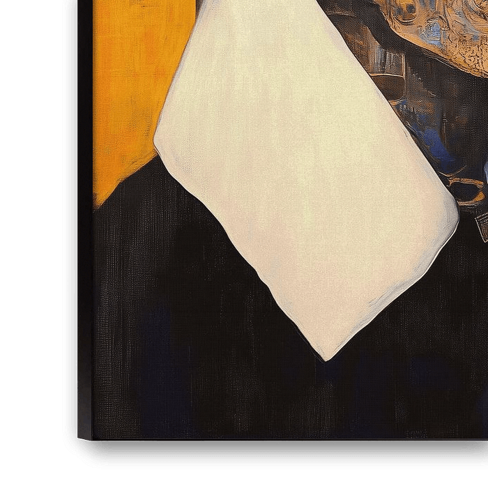 En laten we de mysterieuze liefde binnen de kerk niet vergeten. Dit portret vangt een gevoel van geheime connectie, waar de sfeer geladen is met onuitgesproken woorden en verlangens. De kleuren zijn rijk en diep, en de lichtval creëert een bijna heilige ambiance. De figuren lijken in een stille dialoog verwikkeld, hun blikken vol belofte en melancholie, wat de kijker uitnodigt om zelf deel uit te maken van hun verhaal.