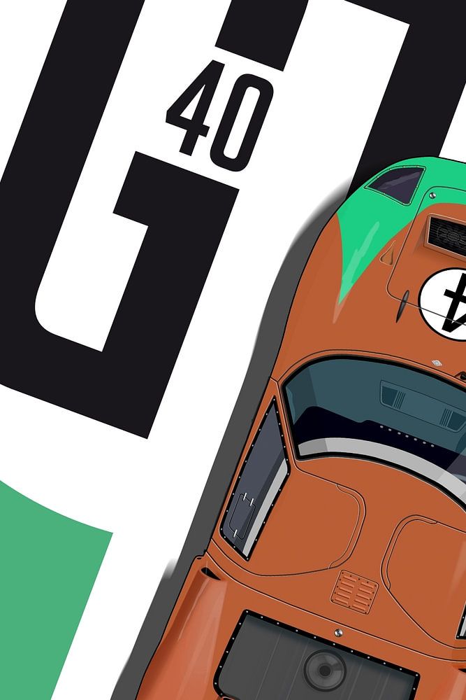 Buy this illustration Ford GT40 Donohue-Hawkins LM 1966 by Theodor Decker on canvas, ArtFrame, poster and wallpaper, printed on demand in high quality.