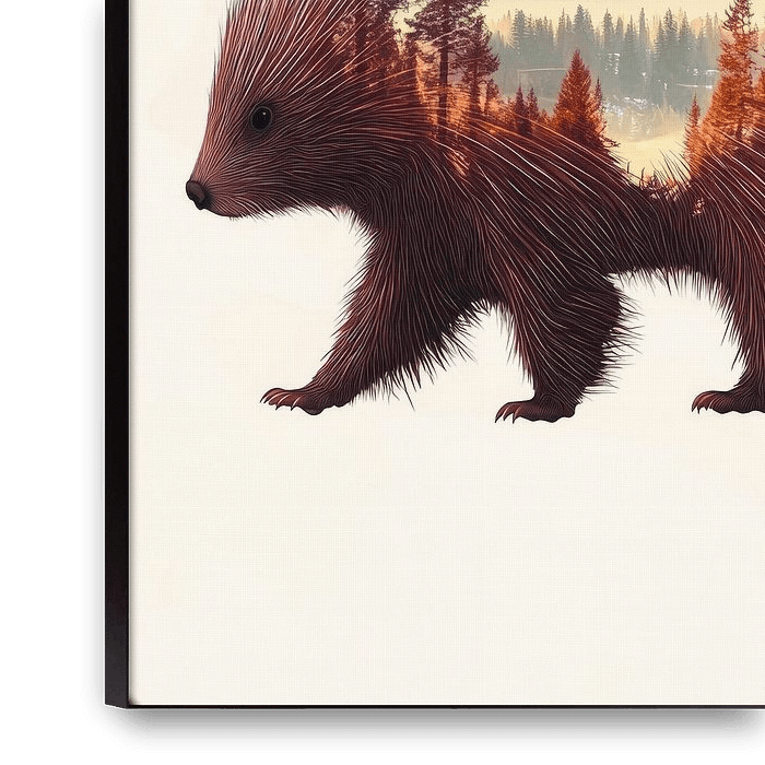 With a mesmerising interplay of living nature and animal grace, this art brings to life the image of a porcupine whose back is criss-crossed by an enchanting forest with rolling hills. Ideal for the living room, it lends any room a harmonious connection to nature and invites you to daydream.