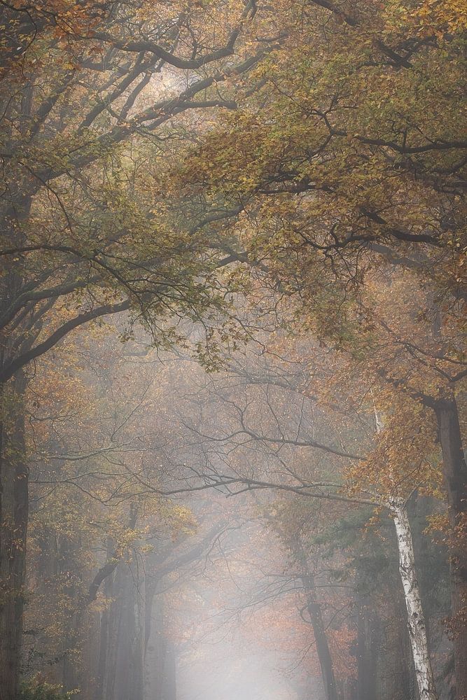 The old familiar road near the Mastbos in Breda, has a nice specific image during foggy days and the autumn season.