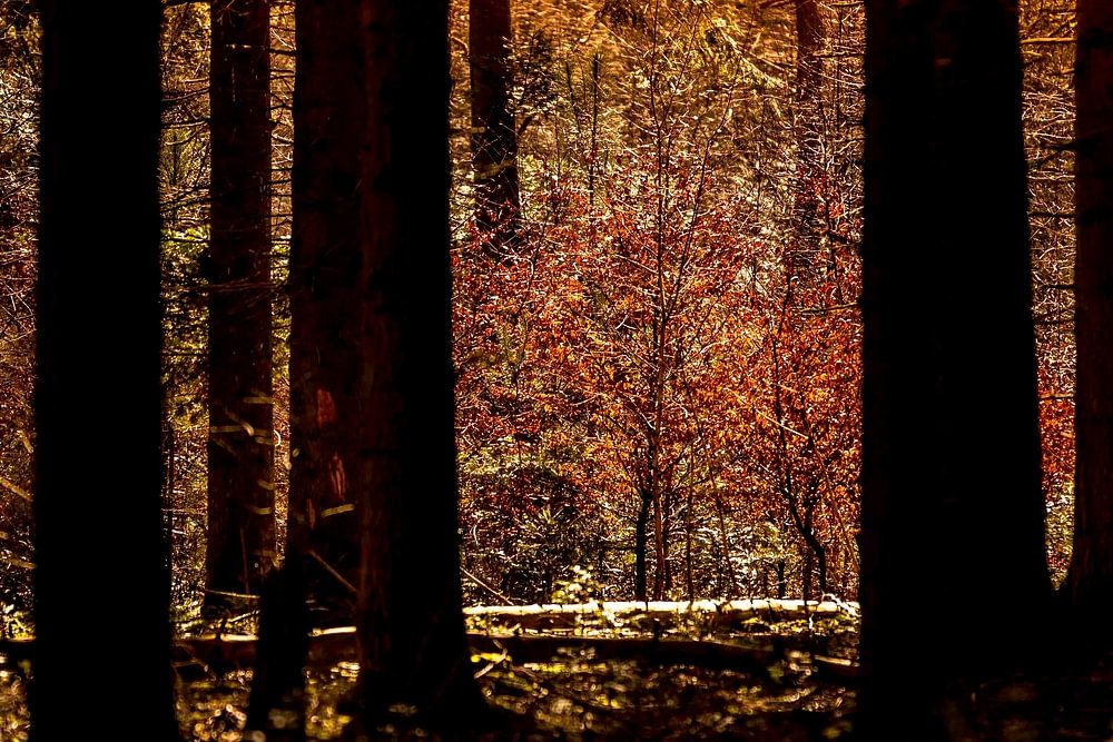 A beautiful forest where a small tree was highlighted by the low sun. The colours are really as seen and not exaggerated. Gives