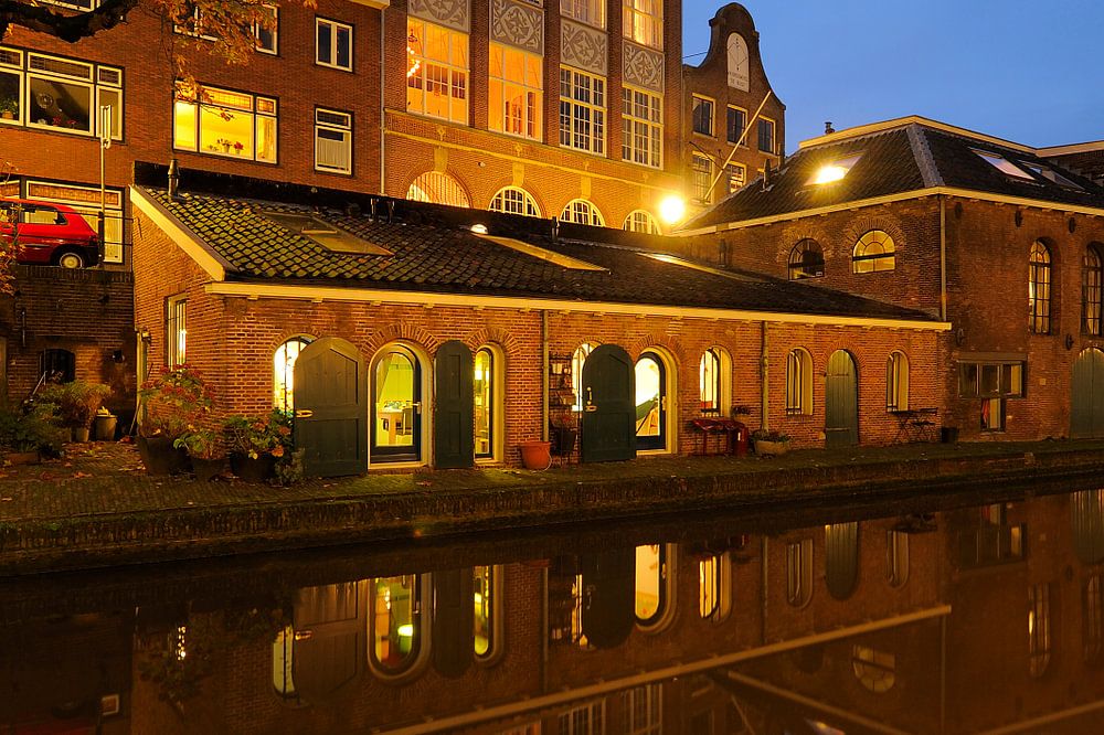 Former brewery De Boog on the Oudegracht. The Oudegracht was an important location for breweries in Utrecht. The canal water could be used as a raw material in the brewing process and logistically, the canal served for supply and removal. In 1897, De Boog closed its doors in competition with large industrial breweries. The bridge on the right is the Vollersbrug. The photo was taken at dusk on 7 November 2013. Dark Utrecht. That's the name of my series of photos of Utrecht places after sunset. Most Dark Utrecht photos were shot at dusk. http://www.donkerutrecht.nl