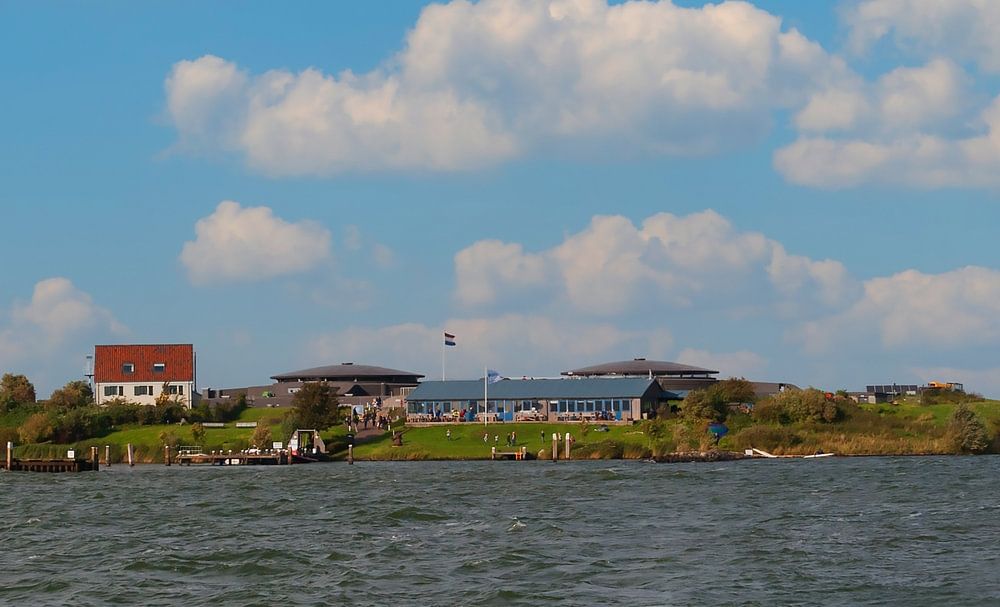 In the 17th century when the IJsselmeer was still an open sea connection with the Zuiderzee, ships that could not enter the harbor in Amsterdam because of the water level had to anchor at Pampus, hence the saying 'lie for Pampus'.