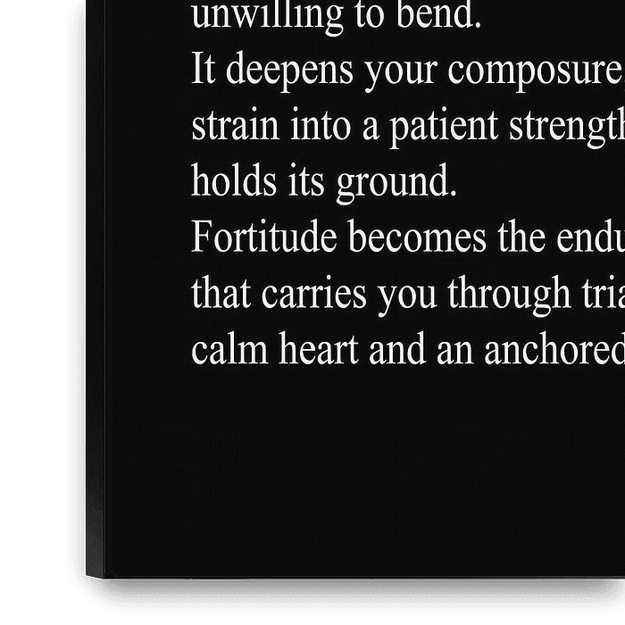 "Fortitude" stands for steadfastness, inner strength and calm courage. This minimalist typography poster brings the meaning of the term into a clear and powerful visual form.