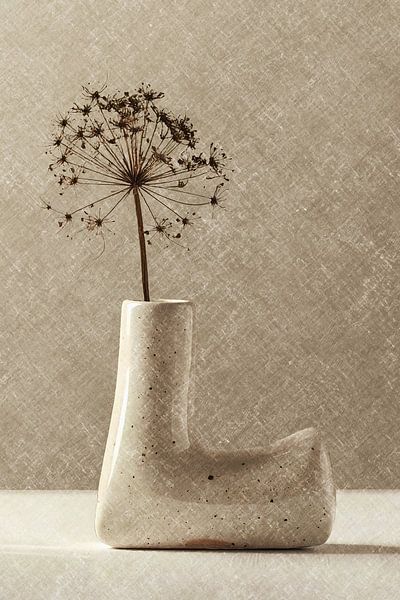 In this minimalist four-part series, each letter is housed in its own sculptural vase, subtly filled with dried hogweed—a fragile silhouette that embraces transience. Inspired by the Wabi Sabi philosophy, this work celebrates the beauty of imperfection, tranquillity and…