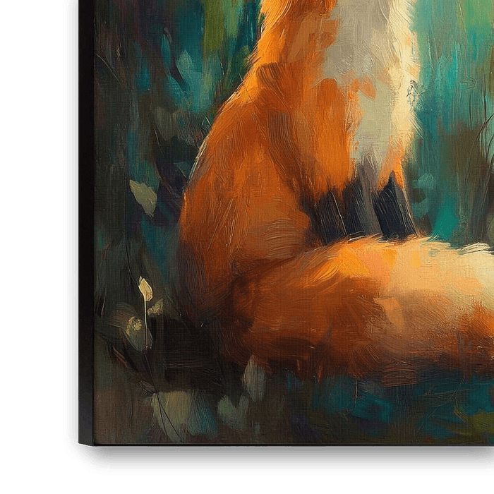 A curious fox with bright orange fur sits in a magical glow of forest light, where the colours gently merge. Its large, sparkling eyes fix with fascination on a dazzling butterfly dancing in a delicate interplay with the breeze. This harmonious encounter epitomises the small wonders of nature and the innocence of childhood.