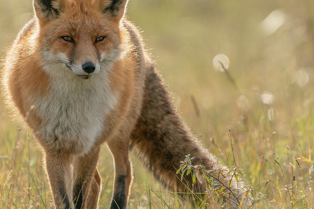 Fox in natural setting with backlight. Photo is taken in the Amsterdam Water Supply Dunes in the Netherlands.