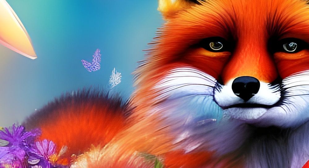 About "Fox with flowers and butterflies in cheerful colours"