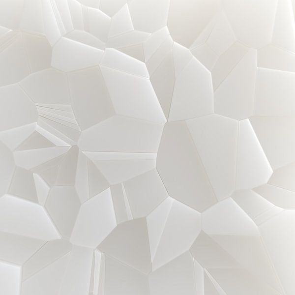 Rendering/ray tracing of a plastic-looking structure made up of fragments, splinters and shards in white and grey.