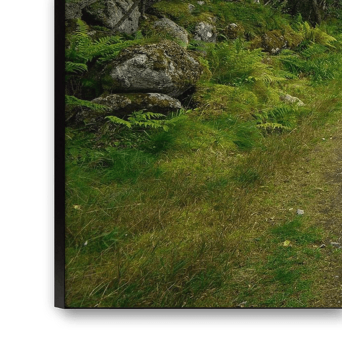 Buy this landscape artwork France - Walking path through forest next to lake in french vosges called lac noir by adventure-photos on canvas, ArtFrame, poster and wallpaper, printed on demand in high quality.