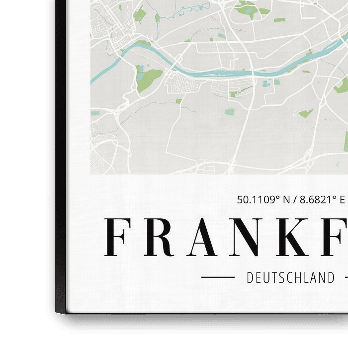 This map of Frankfurt is not just a city map, but an artistic statement that emphasises geometric clarity and urban space. Ideal for lovers of architectural photography and minimalist art, this poster is perfect as a stylish gift for Frankfurt fans and travellers who want to immortalise the city's unique atmosphere in their home.
