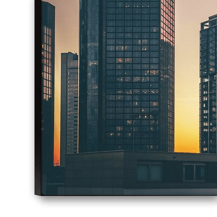 Buy this modern artwork Frankfurt skyline view at sunset by Fotos by Jan Wehnert on canvas, ArtFrame, poster and wallpaper, printed on demand in high quality.