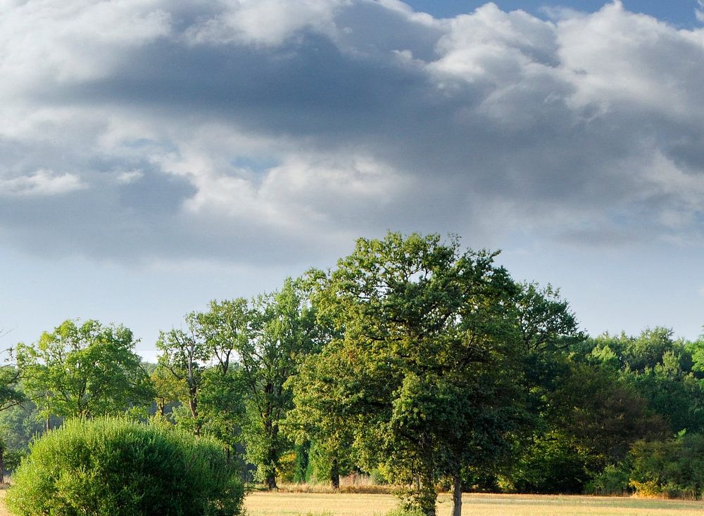 I often walk to this spot just outside the village where I live in France. A pond surrounded by bushes and an oak tree. The low sun gives a beautiful light over the meadows with grass and wild flowers. The clouds in the sky complete the landscape.