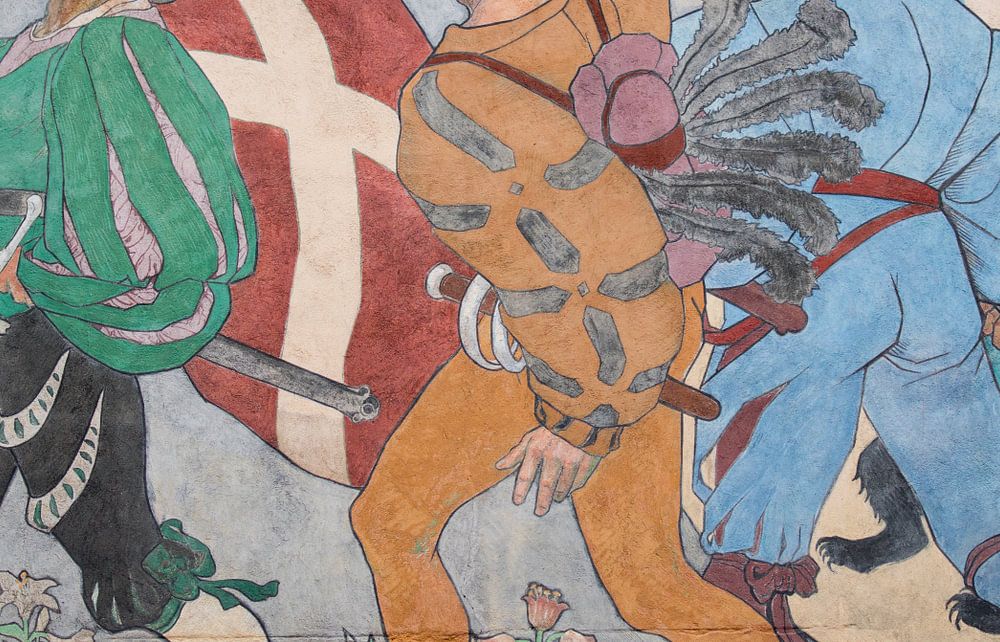 Fresco with knights at Basel Town Hall in Switzerland by Joost Adriaanse