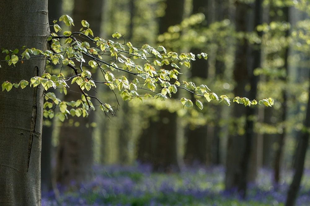 In spring, the wild hyacinths come into bloom in the Hallerbos, together with the budding of the fresh green leaves of the beech trees and a rising morning sun, there is a serene atmosphere in the forest. The light catches beautifully between the trees on the purple coloured wild hyacinth.
